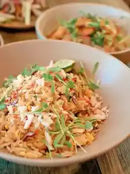 The crab meat is very delicious. The fried rice is added with sausage, cauliflower, and parsley