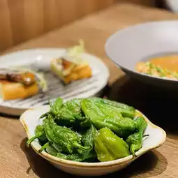 Spanish fried green peppers are soft and juicy, not spicy at all. At first, you can feel the strong flavor of green peppers, and then you can eat it carefully and it tastes a little sweet. Add sea salt and olive oil, and it tastes better and better.