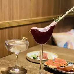 The wine is served in a purple glass that is so pretty that you can't help but drink from it. It is made of vodka, blue curacao, pineapple juice, passion fruit syrup, egg white, and soda water. It tastes sweet and has a strong aroma of wine.