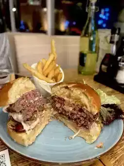 The burger meat is juicy, and the crispy texture of the fries is quite affordable.