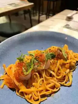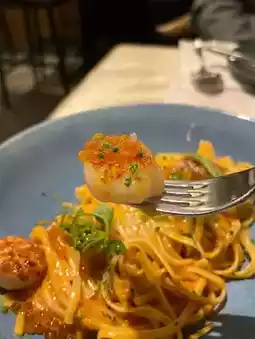 ✦ Pan-fried Hokkaido scallop lobster sauce spaghetti with salmon roe