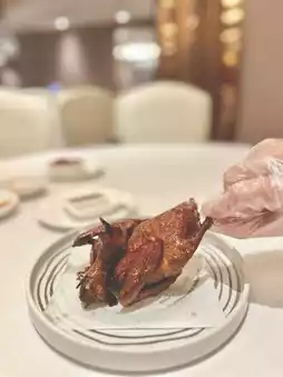 The pigeon is roasted until crispy, and you can dip it in Zhejiang vinegar or Huai salt to enhance its flavor.