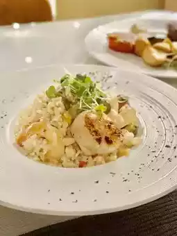 [Assorted Seafood Oregano Cream Sauce Risotto] The seafood includes shrimp, scallops, clams, and crab meat, all of which are fresh and large in size. The risotto has a good texture, creamy but not too sticky.