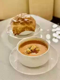 The soup of the day was [Tomato Cream Soup], and we paid extra to order a serving of [Puff Pastry Lobster Soup]. Both soups were very rich in flavor.