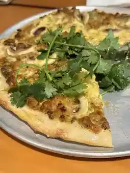 [Chicken Gouda Cheese Coriander Herb Sauce Pizza] Pizza is moderately thick and thin, the cheese is soft and fragrant, the key is the raw coriander to enhance the flavor, perfect for us coriander lovers.