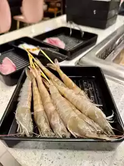 The shrimps on bamboo skewers and whitebait are very fresh. They are not frozen seafood and are still moving. They are sweet and refreshing.
