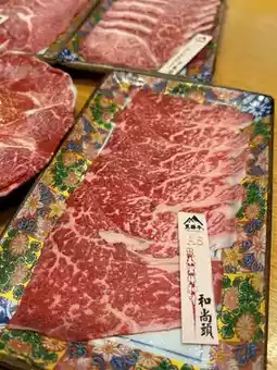 A5 Kumamoto Black Birch Wagyu Beef Neck Rib, Tamago Back Loin, Shoulder Plum, Special Frost Rib, Thousand Bons, Monk Head, Beef Front Breast and American Special Beef Version Tendon. Each meat is beautiful and high quality, the meat is fresh and tender, the thickness is just right.