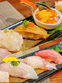 - Sushi 6 items: 6 pieces of sushi selection of high quality, namely seaweed salmon caviar, left mouth fish side, white shrimp, oily fish, abalone and medium toga.