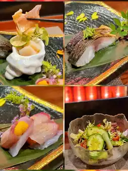 - Sashimi 3: Today we ate smoked salmon, sashimi with red mussels and white body fish seaweed roll.