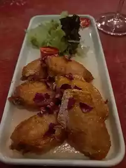 For snacks, we ordered a $78 Turkish grilled chicken roll with wine, which was unbeatable. There are 3 pieces of Turkish Roast Chicken Roll. Although the chicken rolls did not have too much juice, a little not enough juice. However, overall it was good, it was juicy, however I had the authentic Turkish meat rolls which were very juicy. There is enough chicken too 🤣 great. Second, we ordered a $68 rose honey chicken wings, there are six chicken wings, very fragrant rose flavor, and paired with sweet and delicious honey very tasty 🤣 highly recommended 🤣