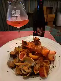Today's main course is $148 homemade Argentinian spicy green sauce tiger prawn seafood spaghetti, super super super tasty, spicy enough, there are two shrimp, then a moderate amount of mussels, a small amount of squid, very full, spaghetti is very refreshing, quality plate, after eating still not enough throat feeling, next time back to eat 💯💯