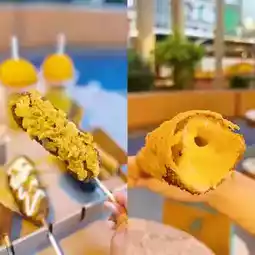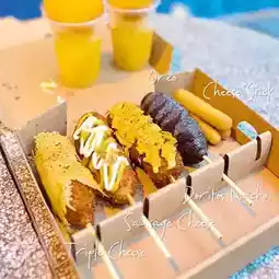 The hot dog stick has a crispy and fluffy crust, and you can easily achieve a strong cheese string effect when you bite it ๐, the whole mouth is full of cheese flavor and very satisfying! You will eat sausage in the middle of the meal, the overall combination is very fragrant!
