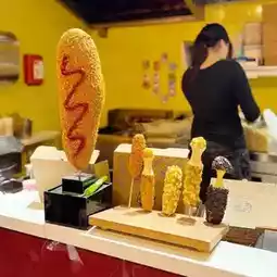The popular Korean cheese hot dog stick shop๐ญ, which always has long queues, cheese lovers must try it! There are many flavors of hot dog sticks to choose from, innovative enough๐, and there is plenty of cheese inside, plus there are a variety of sauces available, you can mix and match freely~