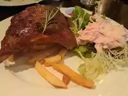 There are four bones when half a portion is cut, and each person eats two bones. The meat is very tender and has a delicious BBQ sauce. The meat is very thick and the light meat is very appetizing. It is really delicious. There are also fragrant, long and crispy French fries. It is so delicious.