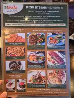 The restaurant we are introducing today is A Tavola Bar & Grill😊It is a Western-style restaurant with comfortable seating, good service, good atmosphere, good feel, and a sense of quality. Today is a weekday, there are many vacancies, so chill, it will definitely be packed on holidays, everyone remember to make a reservation🥰Now let me introduce our recommended food🍔🍟🍕🍝🍖🍗
