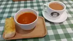 Today we have lunch A (black pepper steak rice), lunch D (seafood cream stewed pasta), each lunch package is Japanese soup and Japanese meal package, the meal package is fragrant and crispy garlic bread 😆 Although small pieces but very tasty 😊 is Japanese soup is borscht 😊