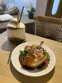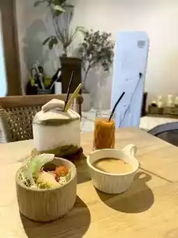 We chose a soup, a salad. The soup that day is tom yum soup is sour and spicy, but not too spicy. The salad is quite fresh, the salad dressing is sour and appetizing 😉
