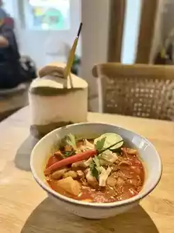 This curry noodle has a lot of curry sauce. I can't stop eating one bite at a time, and the chicken is very smooth with chicken legs🤤