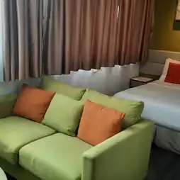 We stayed in the "VIP room", and the small size of the room was expected. As soon as we opened the door, we could almost "see everything with one eye"! "Although the sparrow is small, it has all the organs"! The room has a double bed and a sofa bed and can accommodate up to three adults. We can accommodate 2 adults and 2 children.