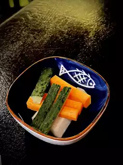 The tofu is served with wood fish flowers. It's crispy on the outside and soft on the inside