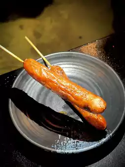 Pork sausage, crispy on the outside and soft on the inside, bursting with juice in your mouth