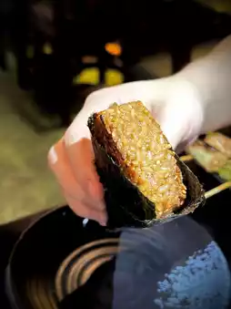 Grilled to crispy, very fragrant rice crumbs, bite the rice not only the aroma of rice, but also the aroma of sesame; can be eaten with seaweed