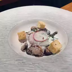 63 degree poached egg and black truffle stir-fried assorted mushrooms