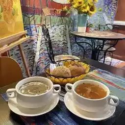 Van Gogh's kitchen is decorated with a nostalgic European feel, with brick-red walls and many Van Gogh works. The large wall mural is decorated with Van Gogh's masterpiece "Cafe Terrace at Night", and there are also classic thousand-year-old chairs, which are great for taking pictures. Dining in this literary and artistic atmosphere is particularly relaxing😍