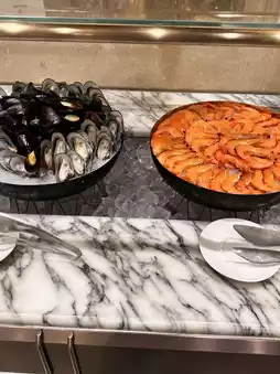 Personal impression: The soft shell shrimp pizza was served hot and crispy enough, salted egg yolk + cheese was an unexpected match. But be aware that the pizza will be oily after it is cold, which will greatly reduce the taste. Eat it while it is hot. The waffles are thin and crispy, and the strawberry ice cream is perfect. My girlfriend can't stop eating it 😂😂 The oysters are fresh and average. The small desserts are mediocre, even my girlfriend who likes sweets doesn't eat them...