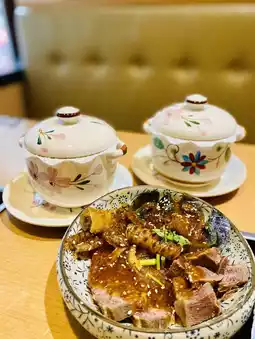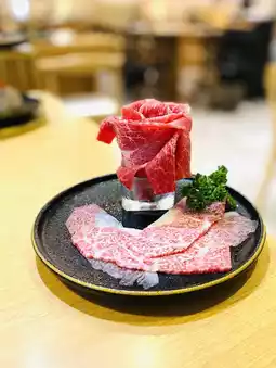 I chose sukiyaki for the soup: A5 wagyu beef is built into the shape of a rose flower. It looks very attractive. The soup is sweet and clear, and the taste goes well with wagyu beef.