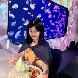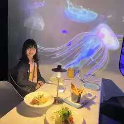 Nikki has always loved the ocean 🌊. After taking the exam, she finally decided to come to this restaurant. The colorful jellyfish are really eye-catching.
