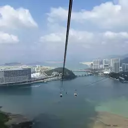 The cable car leaves Tung Chung Cable Car Station, crosses Tung Chung Bay, and continues its ascent. From the heights, you can enjoy sweeping views of Tung Chung town and the airport. After crossing the 751-meter-high Maitreya Mountain, you can see the Hong Kong-Zhuhai-Macao Bridge and the artificial island.