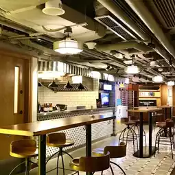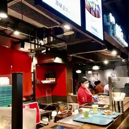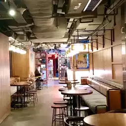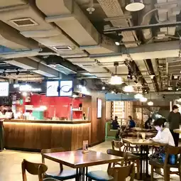 There are 10 food stalls with lots of various seatings surrounded the center lift of the hotel and where the restaurant underneath can be viewed.