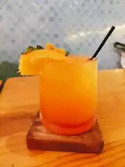 The appearance is quite exquisite, very beat able, with red plum juice, orange juice, pineapple juice blended special drink, very summer feeling, fresh and sweet!