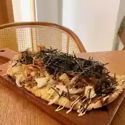 Rare pizza flavor 😆 crispy and thin 😋 Served on a not tough octopus, seaweed and salmon slices, plus Japanese barbecue sauce 👍🏻 pizza tastes very octopus roll 🐙 fragrance