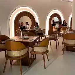 Cafe is very large 🤩 space is full 👍🏻 comfortable seating 🪑 Wooden decoration with round mirror, beautiful photography 📸 food quality 😋 especially parfait, beautiful and good food, see every table has ordered 😍 restaurant is also Pet Friendly 🐶 saw customers bringing dogs together to Chill 👍🏻