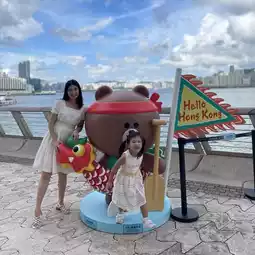 Let Marine play the dragon boat race when she is older! Now take her to take a picture with LINE FRIENDS in the shape of a dragon boat racer. Along the Avenue of Stars, there are 9 sets of cute photo spots LINE FRIENDS characters to take pictures with you in the beautiful scenery of Victoria Harbor📸️! Marine and I Selfie 🤳 Is CHOCO wearing a pink shirt cute with CHOCO who loves to dress up the most? 🥰