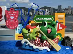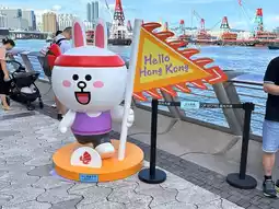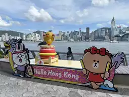 The waffles and shrimp crackers went to the Avenue of Stars for the "LINE FRIENDS Hello Hong Kong Dragon Boat Check-in Point" set up by the Hong Kong Tourism Board on the Avenue of Stars from now until July 2.