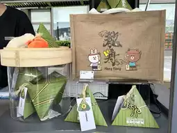 The LINE FRIENDS Dragon Boat themed pop-up store sells a variety of Hong Kong-exclusive souvenirs. There is a "zong" among the souvenirs. Will BROWN pretend to be a salted egg yolk?