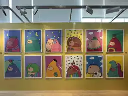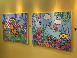 The Art Gallery by the Harbour is hosting the Flabjacks "WELCOME HOME" art exhibition, and Waffles was attracted by the colors of the paintings.