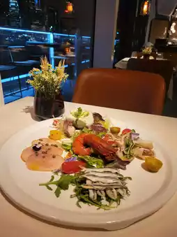 Italian seafood platter $488 ~ There are many varieties, including grilled octopus + cheese, smoked swordfish fillet, red shrimp, grilled squid salad and anchovies, served with fresh salad, very appetizing.
