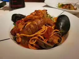 Tomato String Spaghetti with Tiger Prawns, Mantis Prawns and Seafood $388 ~ Homemade string spaghetti with a smoky texture, covered with appetizer sauce, served with tiger prawns, mantis prawns, mussels, clams and squid, the ingredients are top quality!
