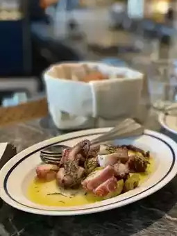 Octopus with olives and then drizzled with olive oil is very fresh, this olive is easy to enter and excellent.