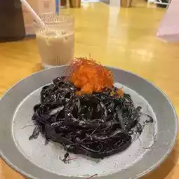 This time I ate squid ink spaghetti with crab seeds, matcha latte, mocha, the pasta is super tasty, very seasoned squid fresh and bouncy 😍😍😍 and saw Taiwan and Taiwan order bamboo charcoal waffles (because I still have a lot of things to eat, so did not order), heard the next station said the waffle with ice cream is coconut flavor ~ very good, we can eat if interested🤭 And strongly want to praise the restaurant, as a cafe, is self-service to pick up water and cutlery, want to say his cutlery, like bowls, is kept warm, with friends when sharing cooked food can keep the food warm 👍🏻