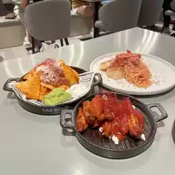 This time I ordered the buffalo chicken wings🍗Nachos and mint cherry shrimp spaghetti🍝
