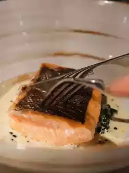 Half-cooked salmon steak, crispy on the outside and soft on the inside, rich in fish oil flavor and salty and fresh in champagne caviar, complement each other! 🎉