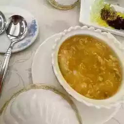 One spoon can scoop up a lot of small lobster meat, 👍 the soup is smooth.