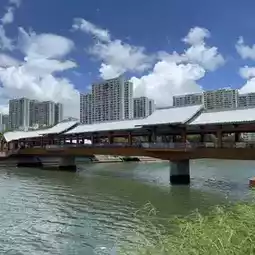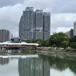 There are many pedestrian bridges 🌉, riverside gardens 🌷 and bicycle paths 🚴 on both sides of the Tuen Mun River 💦. Visitors can walk 🚶 and enjoy the scenery 🏞️, or ride a bicycle 🚴 (bicycle) for exercise 💪 while enjoying the beautiful riverside scenery 🏞️. Even if there is a thunderstorm ⛈️, the scenery is still a different world 🌦️.