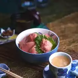 The rice bowl is made with bluefin tuna sashimi from Japan. Thick-cut tuna is placed on the rice at the right temperature, allowing you to fully enjoy the delicious and juicy tuna sashimi!