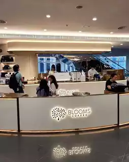 "Blooms Coffee" is located on the 11th floor of Times Square. The open space and simple platinum decoration feel avant-garde with a bit of elegance. It is very eye-catching in the center of the mall